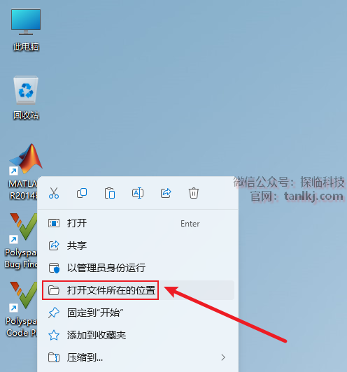 在桌面,右键软件【MATLAB R2014b】,点击【打开文件所在的位置】。