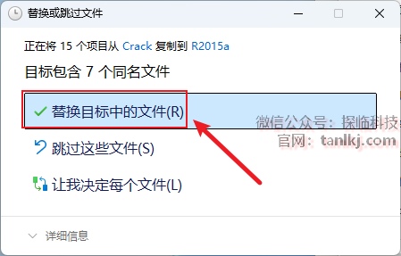 点击【替换目标中的文件】。