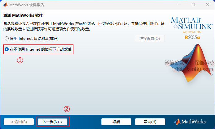 ①勾选【不使用Internet手动激活】;