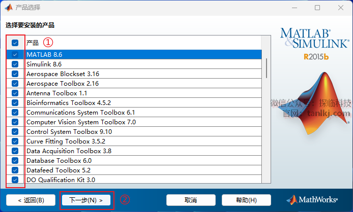①勾选自己需要安装的产品;