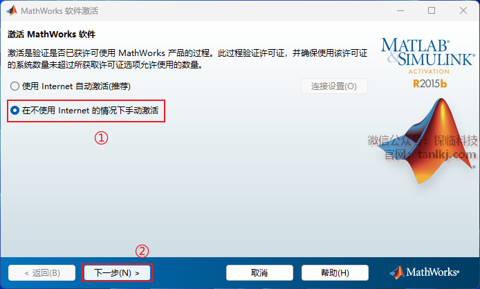 ①勾选【不使用Internet手动激活】;