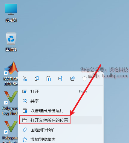 在桌面,右键软件【MATLAB R2015b】,点击【打开文件所在的位置】。