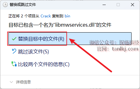 点击【替换目标中的文件】。