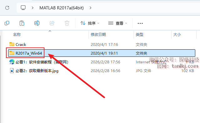 打开解压后的文件夹,双击打开文件夹【R2017a_win64】。
