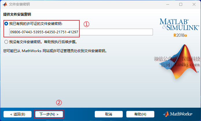 ①勾选【我已有……】,并输入:09806-07443-53955-64350-21751-41297