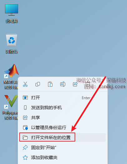 在桌面,右键软件【MATLAB R2018a】,点击【打开文件所在的位置】。