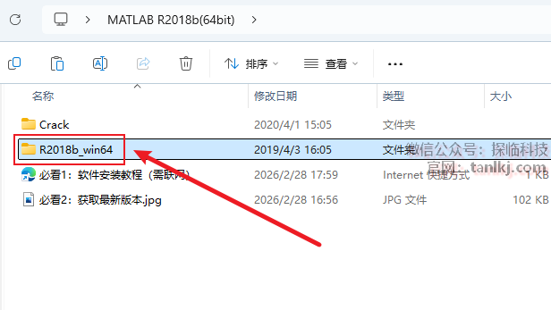 打开解压后的文件夹,双击打开文件夹【R2018b_win64】。