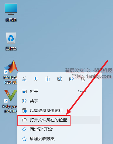 在桌面,右键软件【MATLAB R2018b】,点击【打开文件所在的位置】。