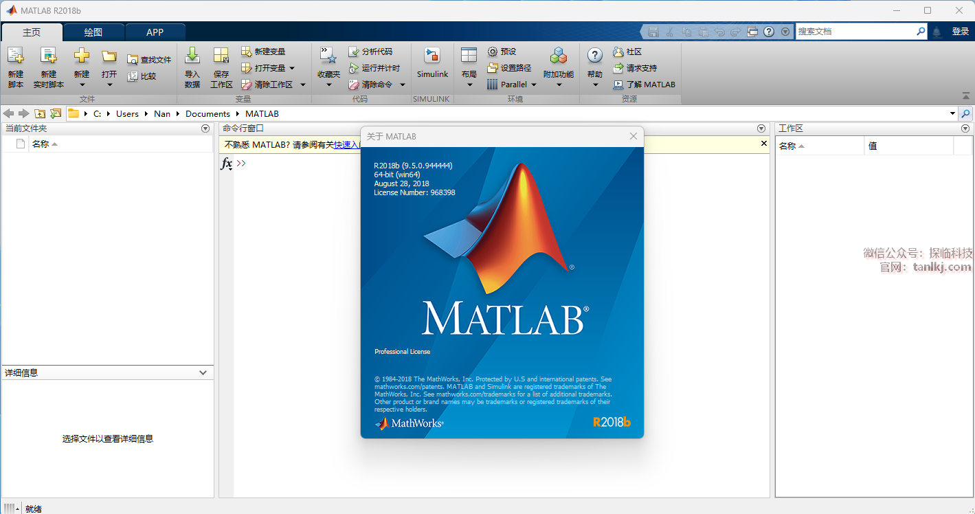 在桌面,双击运行软件【MATLAB R2018b】。