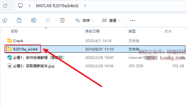 打开解压后的文件夹,双击打开文件夹【R2019a_win64】。