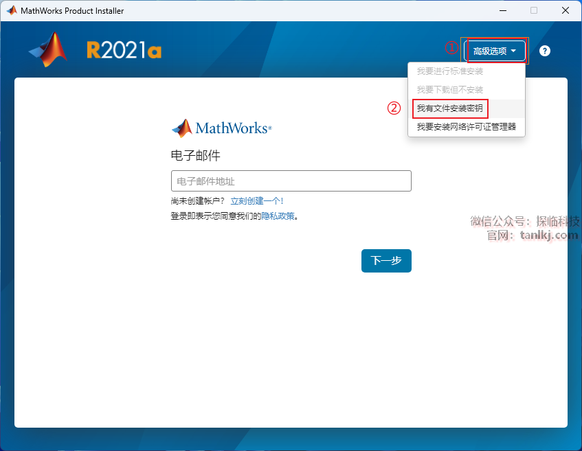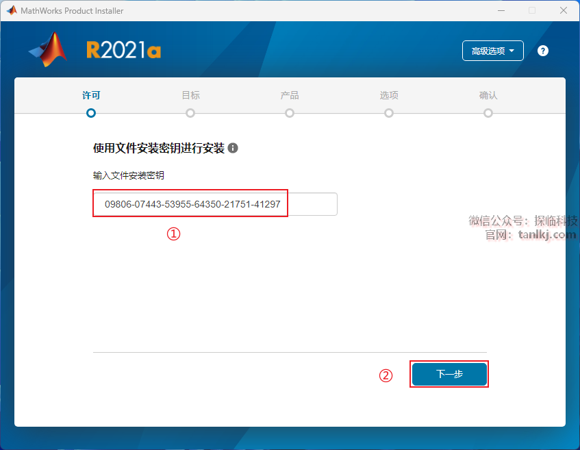 ②点击【我有文件安装密钥】。