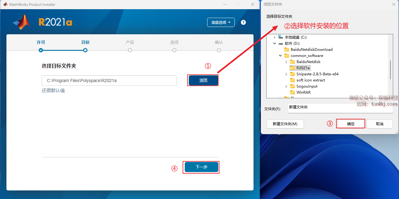 ②选择软件安装的位置,安装路径中不能包含任何中文字符;