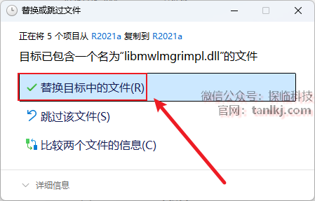点击【替换目标中的文件】。