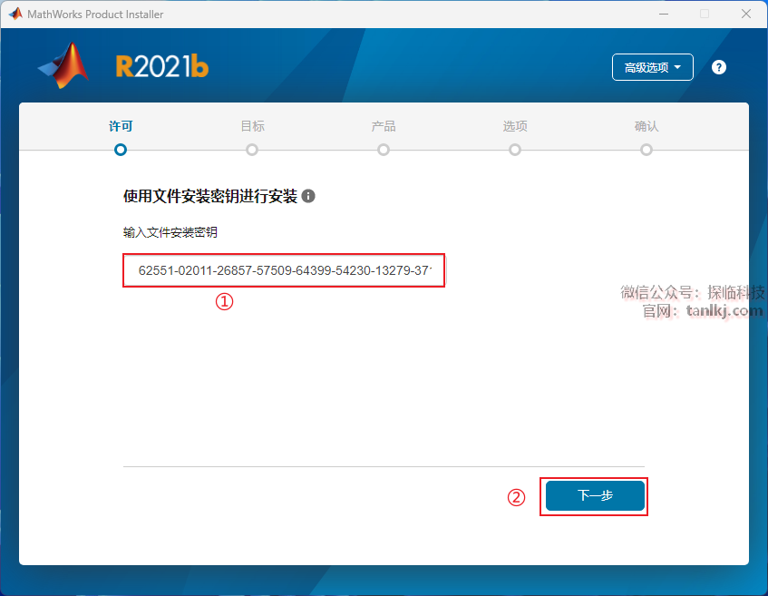 ①勾选【输入许可证文件…】;