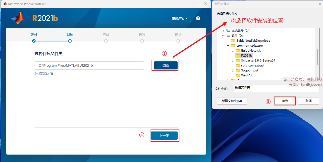 ②选择软件安装的位置,安装路径中不能包含任何中文字符;