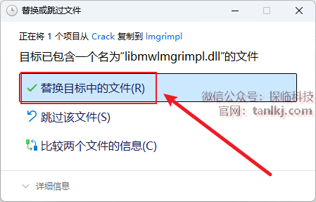 点击【替换目标中的文件】。