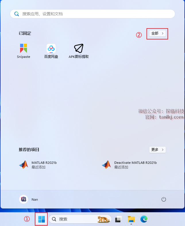 ①点击【开始】图标;