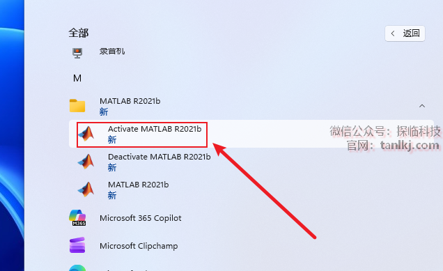找到并点击【Activate MATLAB R2021b】。