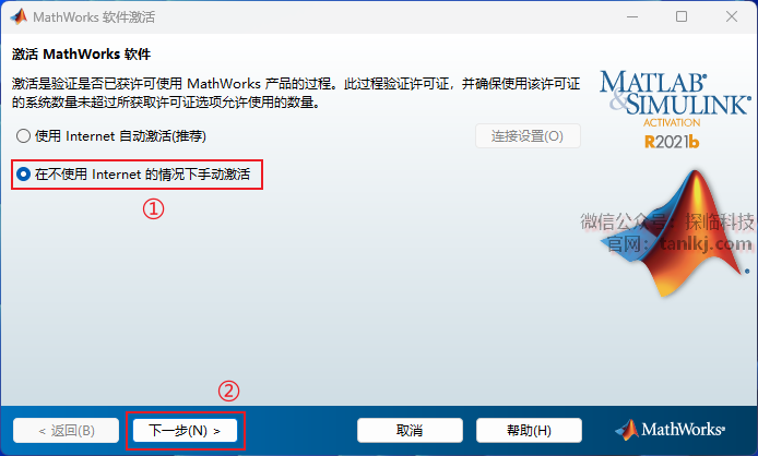 ①勾选【在不使用Internet的情况下手动激活】;
