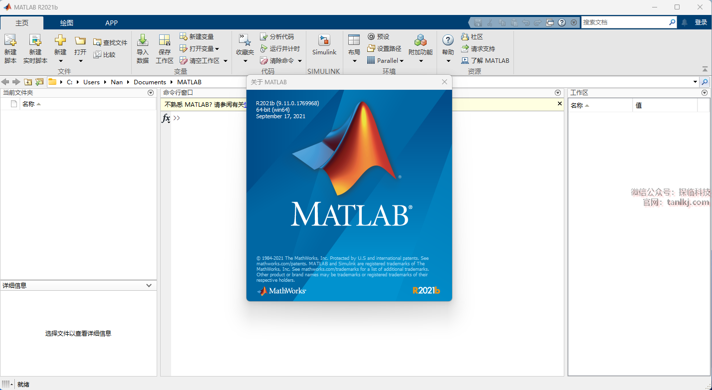在桌面,双击运行软件【MATLAB R2021b】。