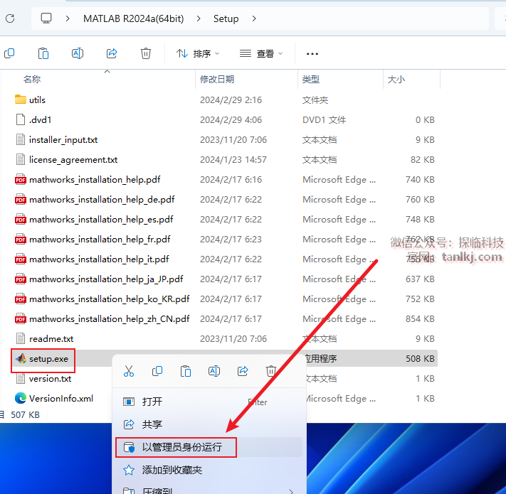 右键程序【setup】,点击【以管理员身份运行】。