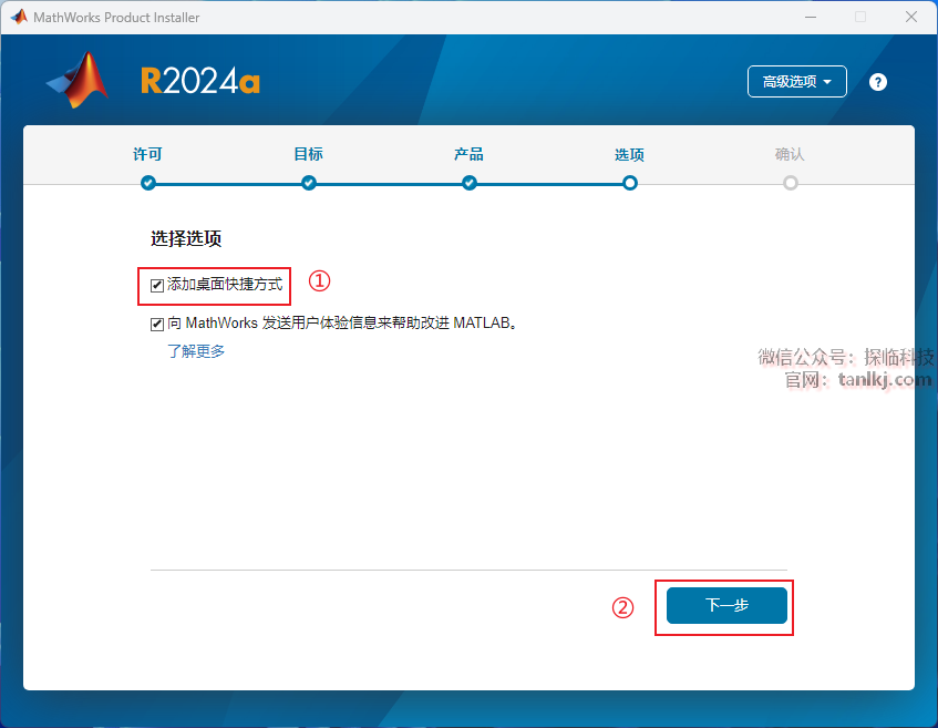 ①勾选【将快捷方式添加到桌面】;