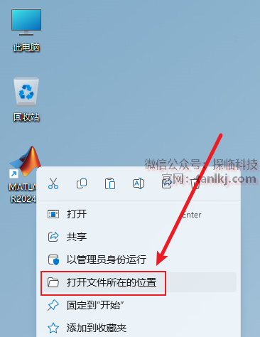 在桌面,右键软件【MATLAB R2024a】,点击【打开文件所在的位置】。