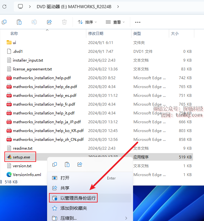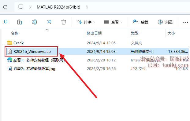 打开解压后的文件夹,双击打开文件【R2024b_Windows】。