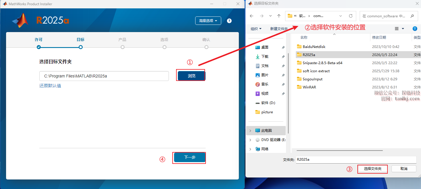 ②选择软件安装的位置,安装路径中不能包含任何中文字符;