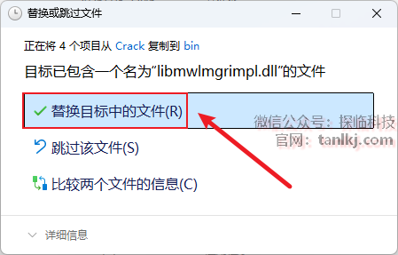 点击【替换目标中的文件】。