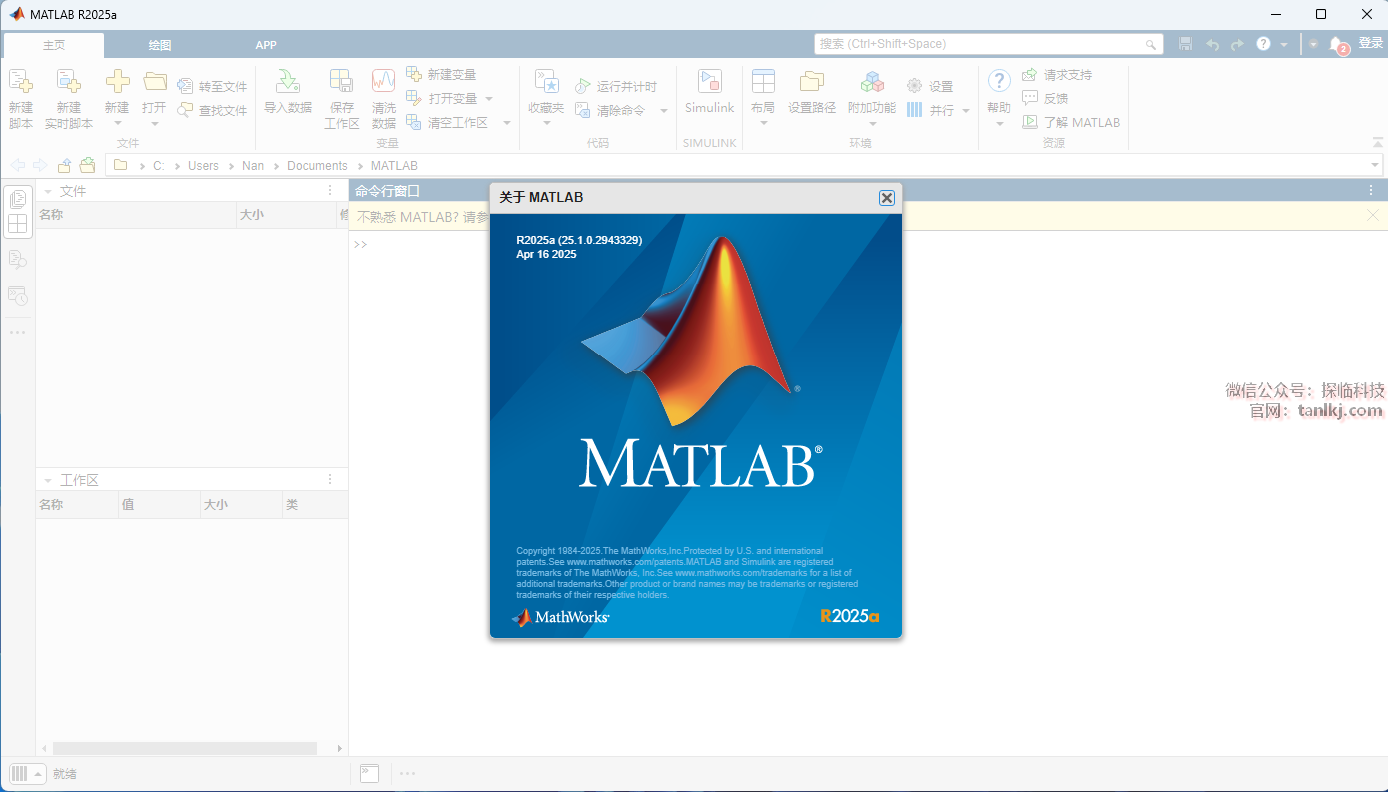 在桌面,双击运行软件【MATLAB R2025a】。