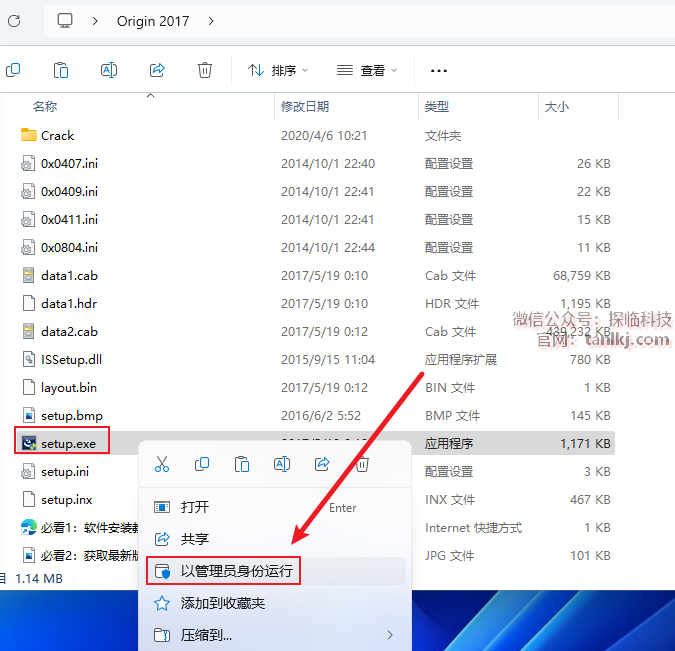 打开解压后的文件夹,右键程序【setup】,点击【以管理员身份运行】。