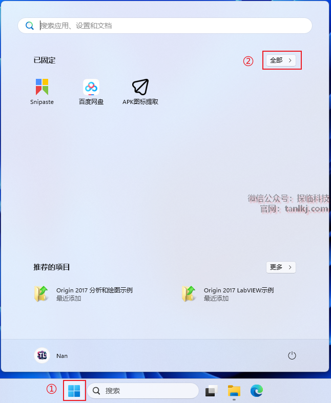 ①点击【开始】图标;