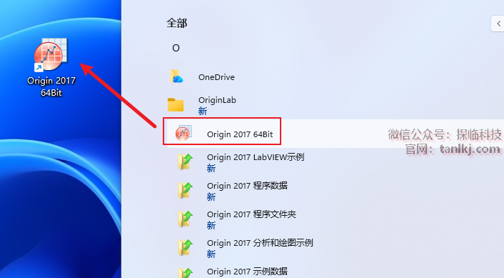 找到软件【Origin 2017 64Bit】,并将其拖至桌面创建快捷方式。