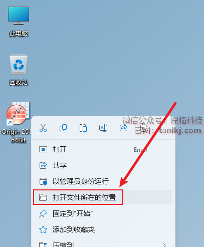 在桌面,右键软件【Origin 2017】,点击【打开文件所在的位置】。