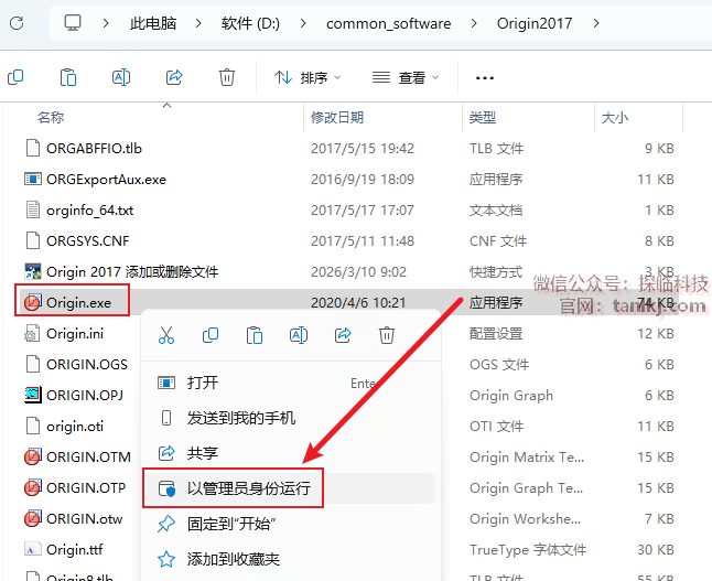 在当前窗口中,找到刚刚粘贴的文件【Origin】,右键点击【以管理员身份运行】(无任何反应)。