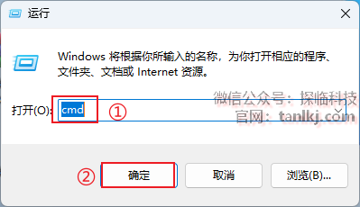 ①按下快捷键【Ctrl】+【R】,输入:cmd;