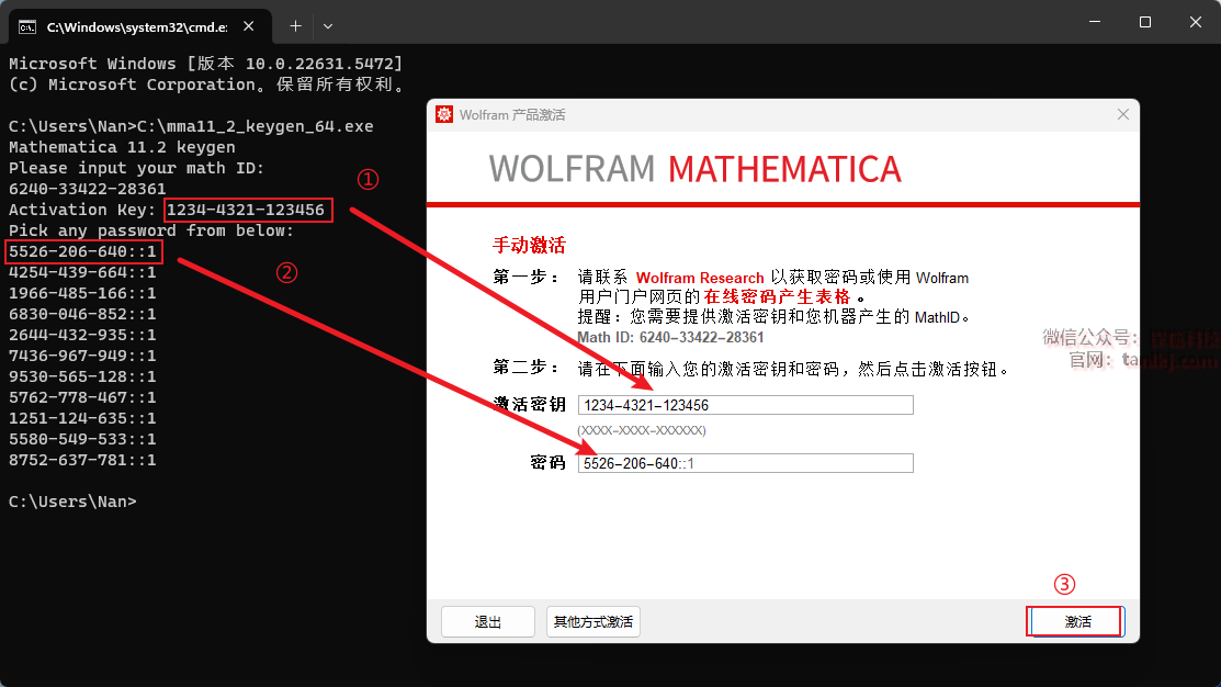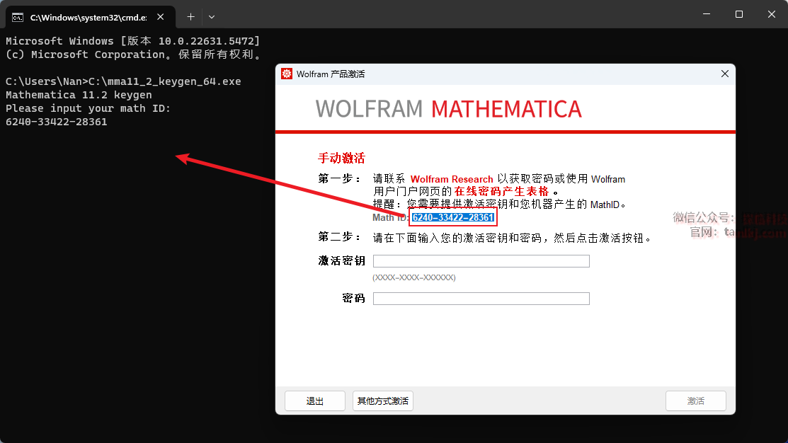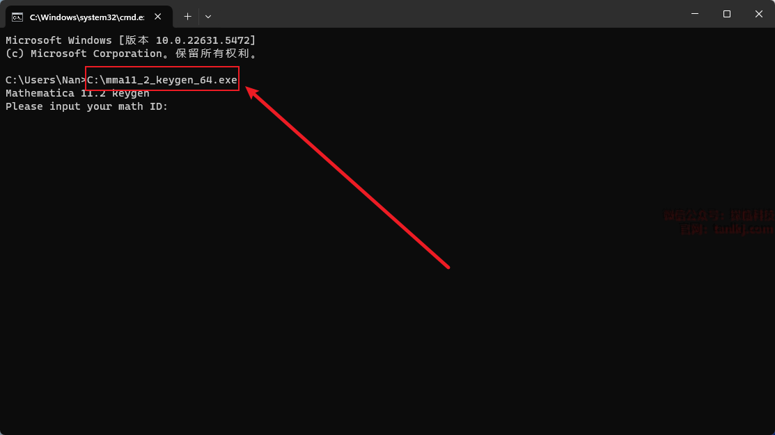 输入以下内容并按下回车键:C:\mma11_2_keygen_64.exe