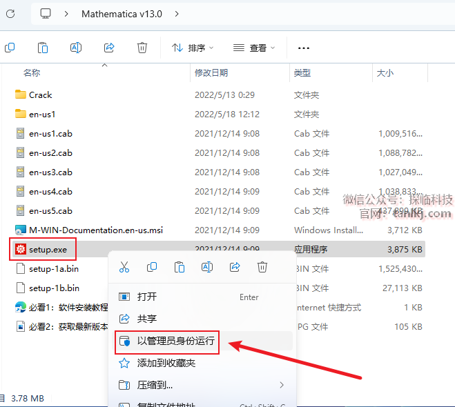 打开解压后的文件夹,右键程序【setup】,点击【以管理员身份运行】。