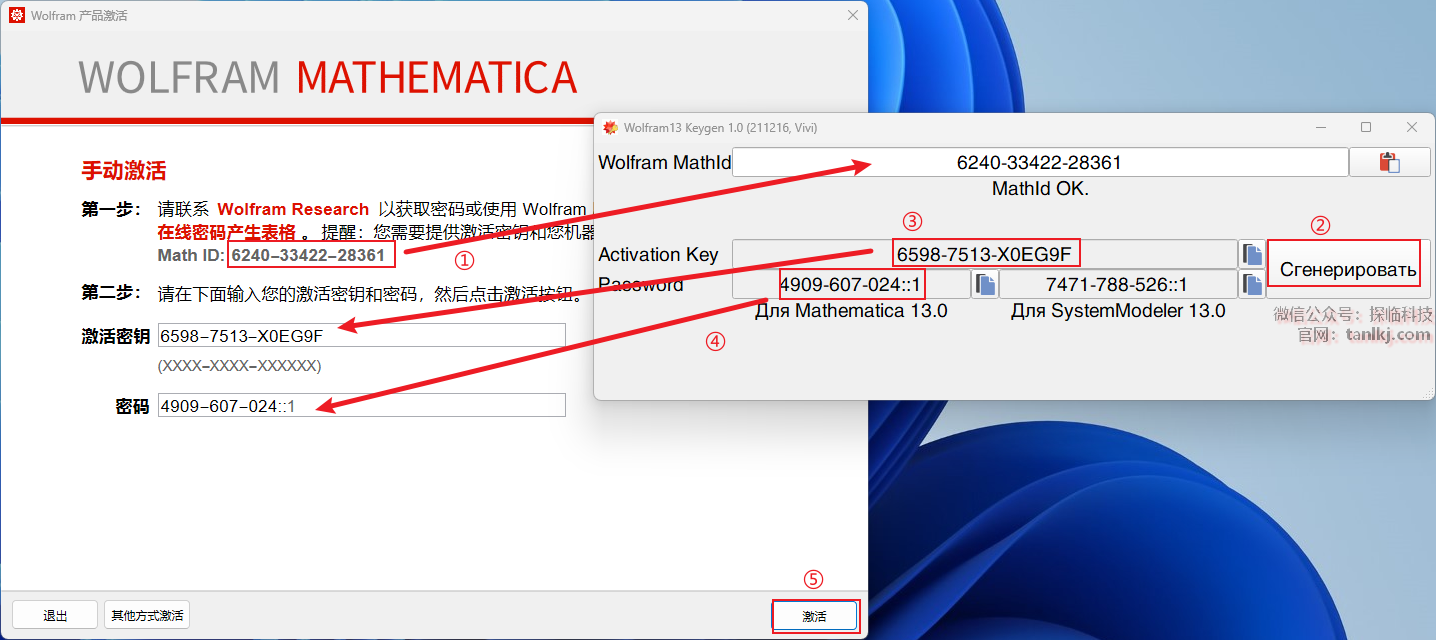 ③将生成的激活秘钥复制到指定框中;