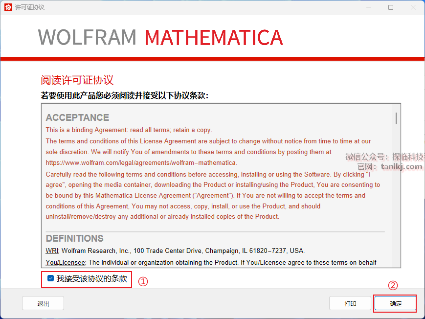①勾选【我接受该协议的条款】;