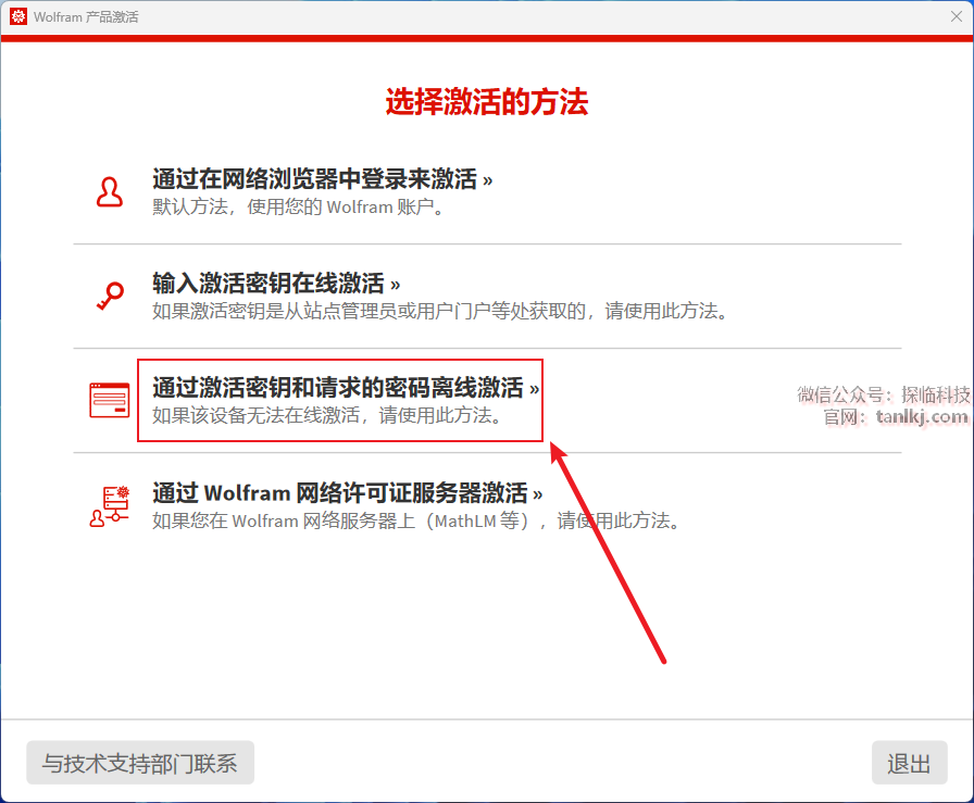 点击【通过激活秘钥和请求的密码离线激活】。