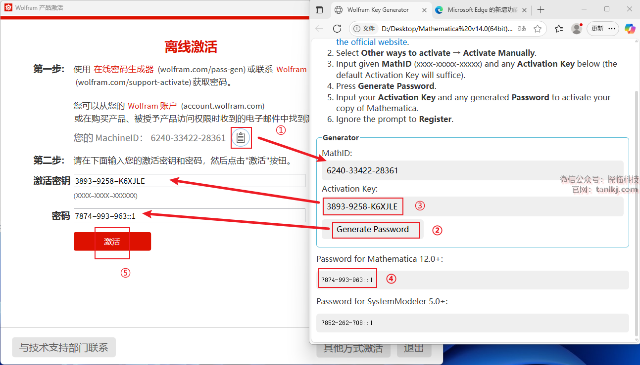③将生成的激活秘钥复制到指定框中;