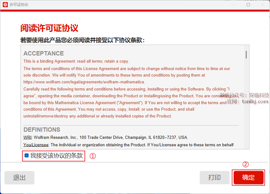 ①勾选【我接受该协议的条款】;
