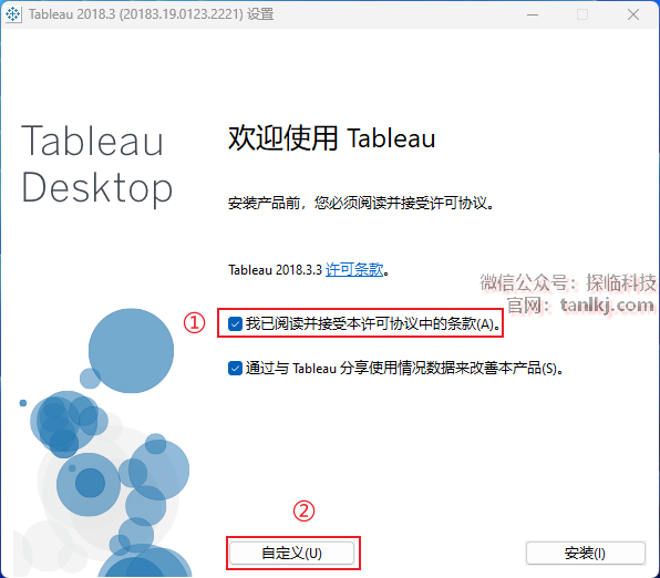 ④去掉勾选【检查Tableau产品更新】;