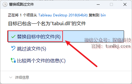 点击【替换目标中的文件】。