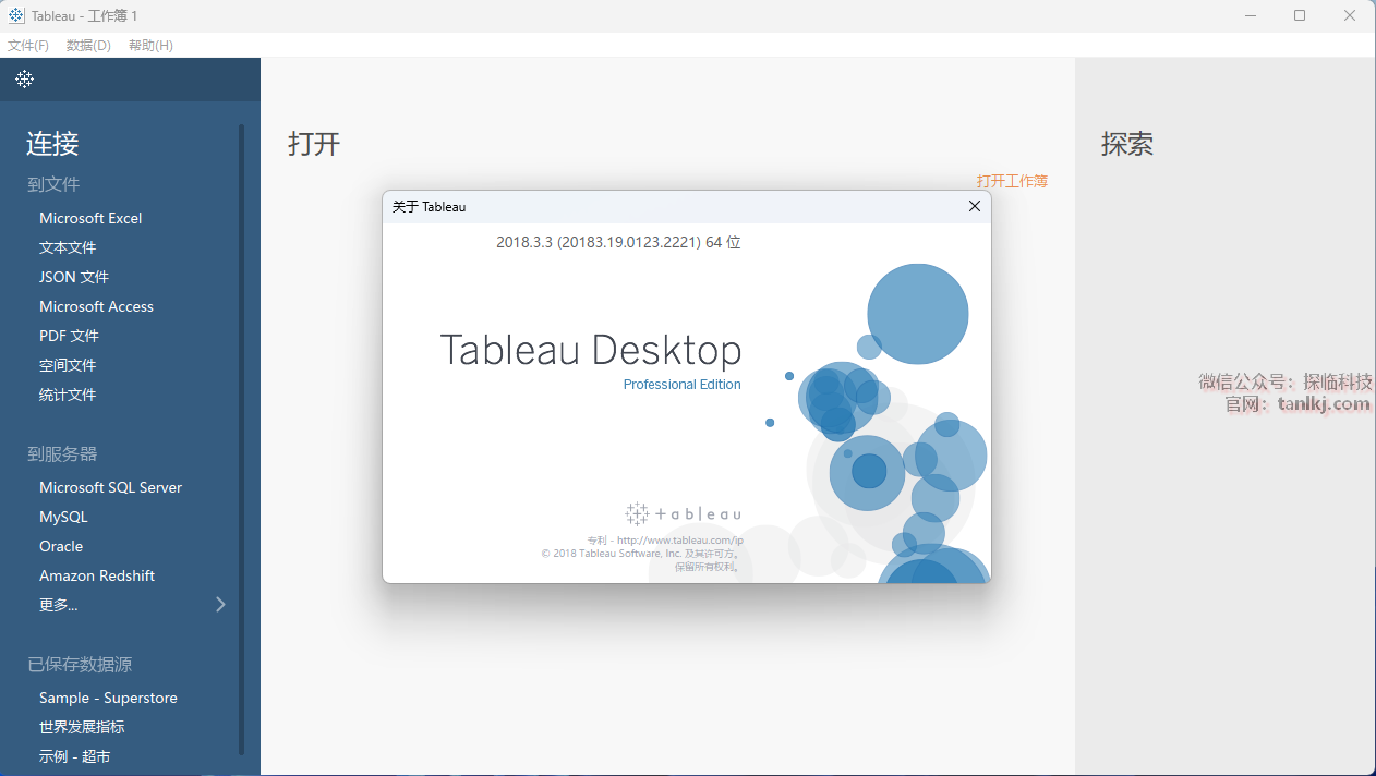 在桌面,双击运行软件【Tableau 2018.3】。