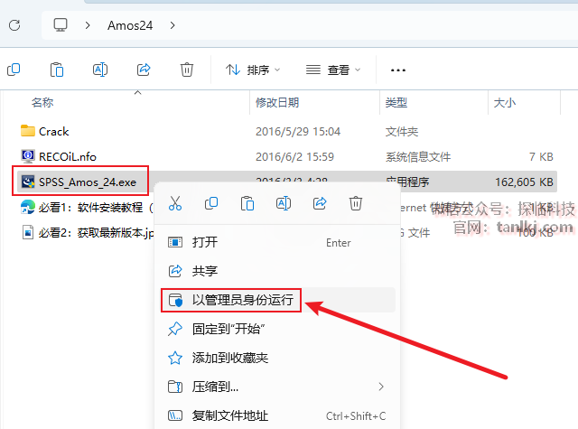 打开解压后的文件夹,右键程序【SPSS_Amos_24】,点击【以管理员身份运行】。