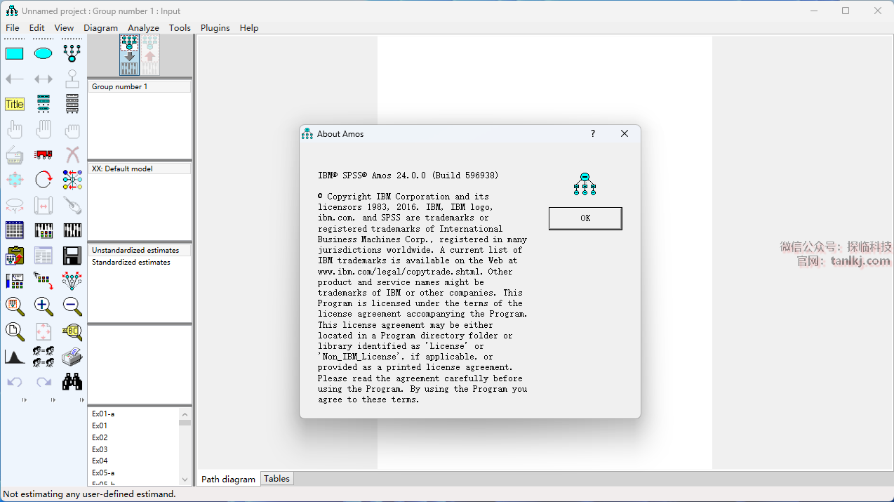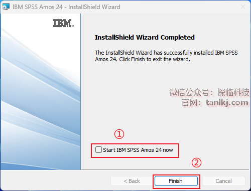 ①去掉勾选【Start IBM SPSS Amos 24 now】;