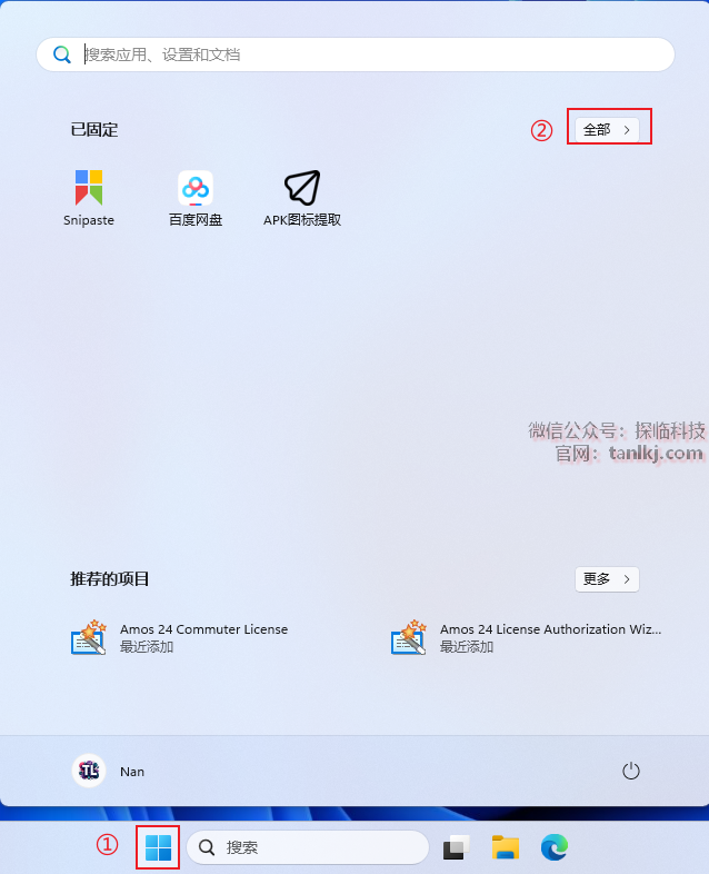①点击【开始】图标;
